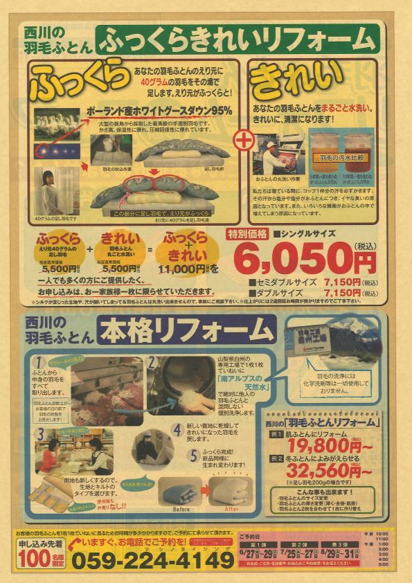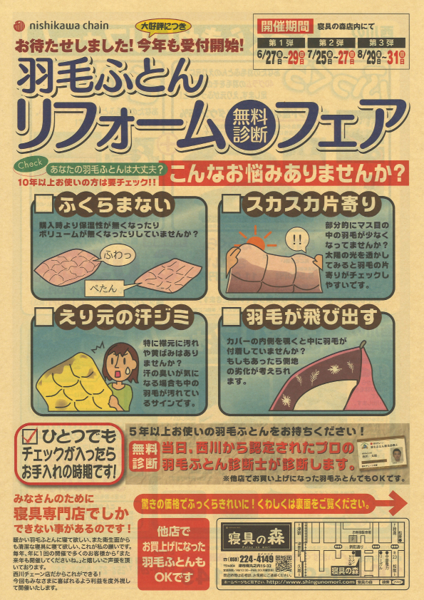 羽毛ふとんリフォーム無料診断フェア